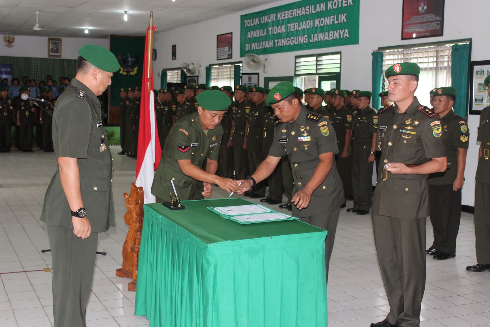 Pergantian pejabat kembali dilaksanakan di lingkungan Jajaran Korem 043/Gatam pada hari Kamis, tanggal 19 Desember 2013, pukul 09.00 WIB di Aula A. Yani Makorem 043/Gatam dari pejabat lama, Letnan Kolonel Inf Sugiyono kepada Letnan Kolonel Inf Slamet Riadi. Sebagai IRUP pada Upacara Serah Terima Jabatan Dandim 0422/LB oleh Kepala Staf Korem 043/Gatam, Letnan Kolonel Arm SDM. Tampubolon mewakili Komandan Korem 043/Gatam dengan dihadiri oleh Para Dandim Jajaran Korem 043/Gatam, Para Dan / Ka Satdisjan Jajaran Korem 043/Gatam, Para Kepala Seksi, Para Kepala Balaks, Ketua Persit KCK Koorcab Rem 043/Gatam dan pengurus, serta para perwira, perwakilan Bintara, Tamtama dan PNS Jajaran Korem 043/Gatam. Dalam amanat Komandan Korem 043/Gatam yang disampaikan oleh Kepala Staf, Beliau menyampaikan Serah terima jabatan merupakan siklus alamiah dari sistem organisasi modern dan bisa terjadi setiap saat. Proses pergantian kepemimpinan ini merupakan bagian penting dalam sistem pembinaan organisasi dan pembinaan personel serta pembinaan karier perwira. Dengan demikian alih tugas jabatan ini diharapkan dapat meningkatkan kinerja Satuan Kodim 0422/Lampung Barat dan jajarannya lebih baik dari kinerja sebelumnya. Prosesi serah terima jabatan menjadi moment penting dalam pengembangan karier perwira dengan beban tugas dan tanggung jawab yang lebih besar dan variatif bagi perwira yang melaksanakan serah terima jabatan tersebut. hal yang sangat esensial bahwa alih tugas jabatan seorang Komandan Kodim hendaknya dimaknai sebagai suatu amanah yang harus dapat dipertanggungjawabkan, sekaligus sebagai peluang untuk menghasilkan karya pengabdian terbaik kepada masyarakat, bangsa dan negara. Untuk itu, perlu dihayati benar bahwa semakin tinggi jabatan yang diemban, maka semakin besar pula resiko dan tanggung jawab yang harus dipikul oleh seorang perwira, yang mana semua itu sangat memerlukan pengorbanan baik waktu, pikiran maupun tenaga dari pejabat Komandan Kodim yang baru. Satuan Kodim 0422/Lampung Barat sebagai salah satu sub kompartemen strategis dalam jajaran Korem 043/Gatam yang berada di wilayah Kabupaten Lampung Barat, keberadaannya memiliki tugas dan peran penting dalam rangka mendukung tugas pokok Korem 043/Gatam terutama untuk mewujudkan pertahanan wilayah, Khususnya di Kabupaten Lampung Barat. Selanjutnya, dengan kondisi Kabupaten Lampung Barat yang cukup luas wilayahnya dan posisinya sebagai Kabupaten penyangga Provinsi Lampung, tentunya sangat erat kaitannya dengan tugas dan tanggung jawab yang diemban oleh Kodim 0422/Lampung Barat, dengan berbagai sarat dinamika kehidupan yang sangat kompleks di masyarakat. Tentunya, posisi yang sedemikian mempunyai konsekuensi logis bahwa tantangan tugas yang dihadapi juga semakin besar, seiring dengan perkembangan situasi yang terjadi di wilayah Kabupaten Lampung Barat khususnya, Provinsi Lampung pada umumnya. Begitu juga setiap terjadi gejolak sosial dan perubahan kondisi wilayah di masyarakat, tentunya akan mudah berpengaruh ke kabupaten lain di wilayah Provinsi Lampung. Dengan mencermati kondisi kewilayahan yang demikian kompleks, maka setiap aparat di wilayah ini harus lebih tajam melihat dan menangkap fenomena yang terjadi baik perubahan yang berdimensi geografis, demografis maupun kondisi sosial yang dapat menjadi potensi timbulnya gejolak yang dapat mengganggu kepentingan pertahanan wilayah di daerah. Sehingga demikian, upaya pembinaan kewilayahan yang menjadi tugas pokok Kodim 0422/Lampung Barat dan jajarannya harus dilakukan melalui pendekatan yang lebih terarah dan terpadu, baik melalui pendekatan di bidang agama, budaya dan kemasyarakatan. Hal ini berarti, bahwa pembinaan kewilayahan hendaknya harus difokuskan pada terciptanya keterpaduan hubungan antara aparat di daerah, baik aparat Pemerintah Daerah, Kepolisian maupun instansi lain serta segenap elemen masyarakat dalam rangka membangun kesadaran bermasyarakat, berbangsa dan bernegara bagi warga masyarakat Kabupaten Lampung Barat. Tantangan tugas yang sedemikian, kiranya tidak sulit untuk dilaksanakan oleh prajurit jajaran Kodim 0422/Lampung Barat, mengingat selama ini keberadaannya, telah diterima oleh masyarakat dengan melalui berbagai aktivitas yang konstruktif dan bermanfaat untuk kepentingan masyarakat wilayah Kabupaten Lampung Barat. Selanjutnya, berkenaan dengan serah terima jabatan ini, kepada Kolonel Inf. Sugiono, saya selaku Komandan Korem 043/Gatam dan pribadi menyampaikan ucapkan terima kasih dan penghargaan atas dedikasinya dalam melaksanakan tugas jabatan sebagai Komandan Kodim 0422/Lampung Barat. Ucapan terima kasih, juga saya sampaikan pula kepada Ibu Inge Sugiyono, atas kesetiaannya mendampingi suami selama menjabat Komandan Kodim 0422/Lampung Barat, khususnya dalam membina organisasi Persit Cabang Kartika Chandra Kirana Kodim 0422/Lampung Barat.Kepada pejabat baru Letnan Kolonel Inf Slamet Riadi, saya ucapkan selamat datang dan selamat bertugas, atas pengangkatan dan kepercayaan pimpinan menjadi Komandan Kodim 0422/Lampung Barat yang baru. Pelihara dan kembangkan berbagai inovasi dan kreasi, guna meraih prestasi tugas satuan Kodim 0422/Lampung Barat yang lebih baik dan bermanfaat bagi kepentingan masyarakat, bangsa dan negara, demikian yang disampaikan oleh Danrem 043/Gatam.