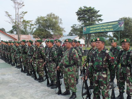 setelah melaksanakan apel gelar pasukan, para personel yang terlibat dicek kesiapannya baik personel ataupun materiil oleh Kasdim 0422/LB (Mayor Inf Joko Warsito) serta diberikan pembekalan tentang pentahapan Pilkada yang sudah berjalan ataupun yang belum dilaksanakan.