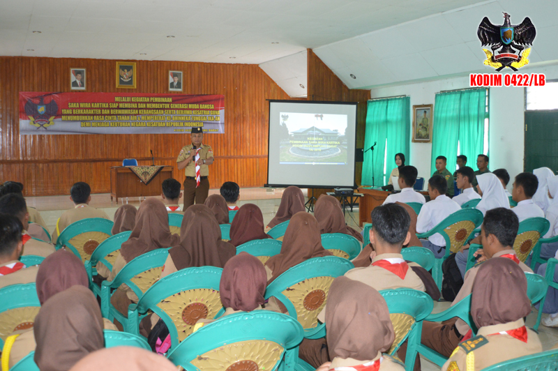 - Kemudian dilanjutkan dengan perkenalan Komandan Kodim 0422/LB dari mulai masuk TNI AD sampai saat ini menjabat Komandan Kodim 0422/LB. adek-adek semua sebagai generasi penerus bangsa harus mau belajar dengan baik patuh terhadap kedua orang tua dan para pembina yang ada disekolah masing-masing agar apa yang menjadi harapan dari orang tua dapat tercapai dengan baik.