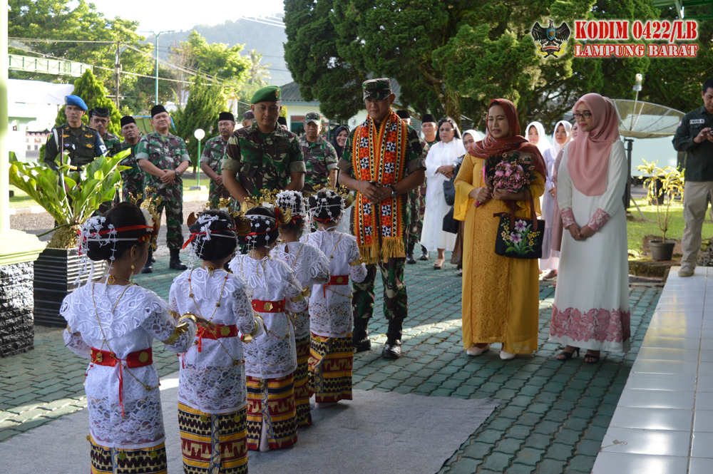 Safari Ramadhan Danrem 043/Garuda Hitam Kolonel Kav. Erwin Djatniko, S.Sos di Kabupaten Lampung Barat disambut dengan penuh sukacita oleh Dandim 0422/LB Letkol Kav. Adri Nurcahyo, S.T. beserta Jajaran Kodim 0422/Lampung Barat, Jum'at, 25 Mei 2018.
