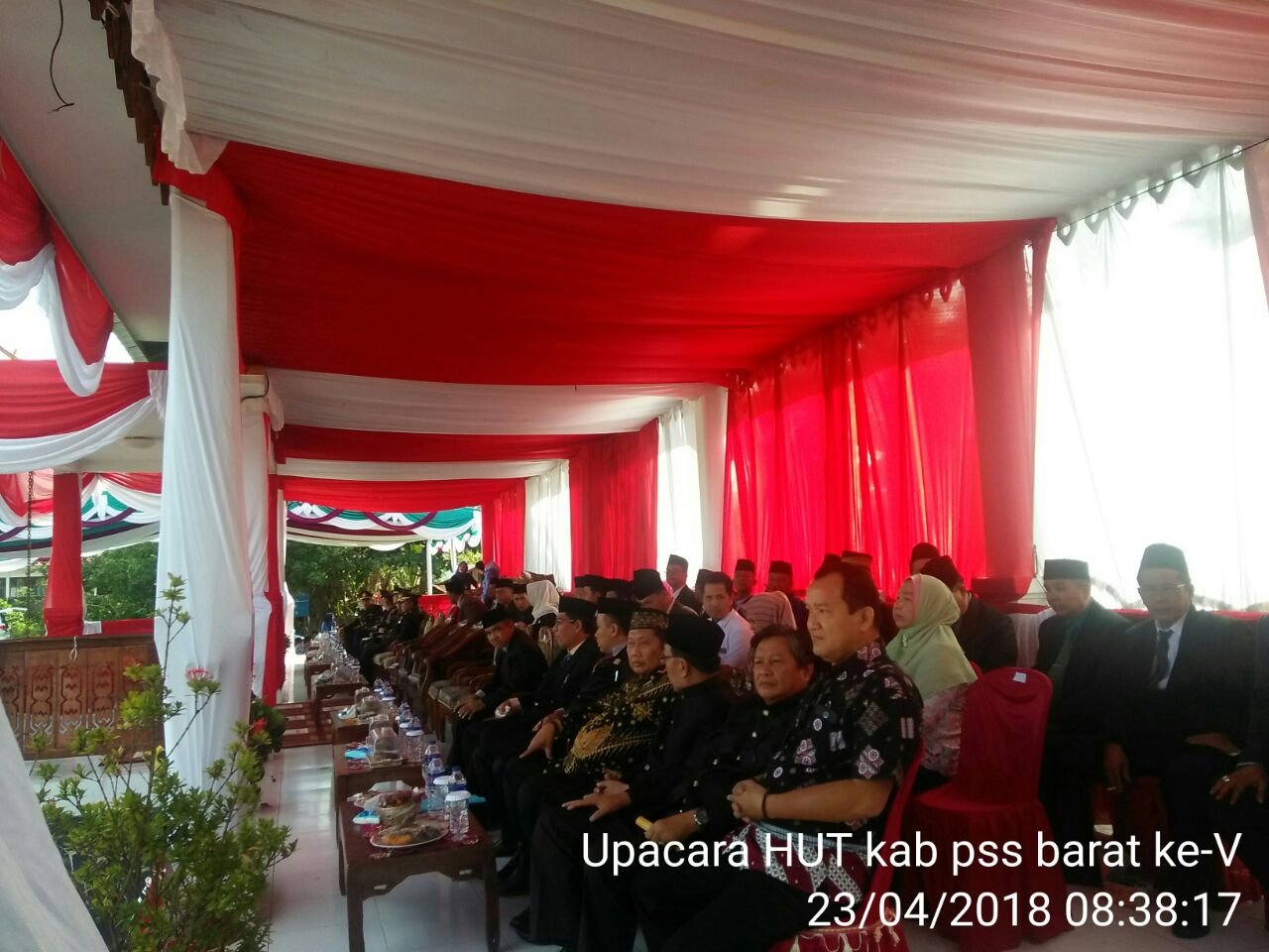 Senin tgl 23 April 2018 pkl 08.40 wib bertempat di lapangan Labuhan jukung pekon kampung jawa kec pss tengah kab pss barat telah dilaksanakan Upacara memperingati HUT ke- V kab pss barat th 2018.