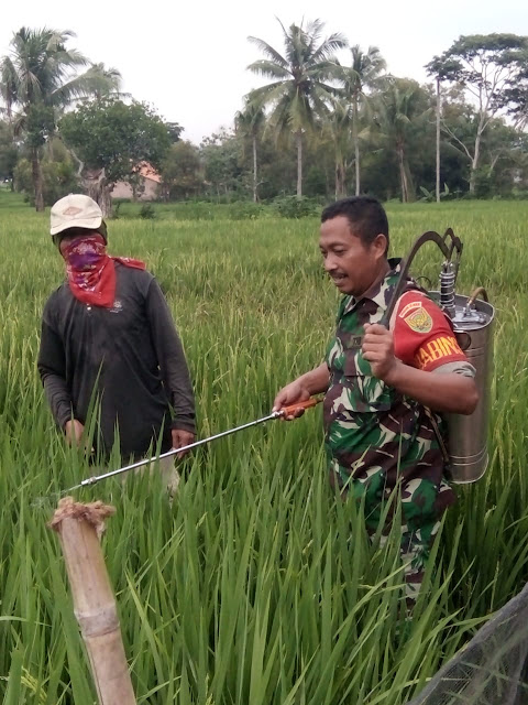 Kodim 0422/LB (Lampung Barat)- Babinsa Koramil 422-04/Balik Bukit Serda yuli melaksanakan upaya khusus (Upsus) pendampingan pertanian membantu petani dalam membasmi hama padi.