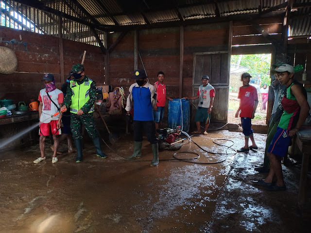 Tepatnya di Pekon Tembalang telah terjadi bencana banjir yang mengakibatkan jembatan yang menghubungkan pemangku karang tengah dan pemangku talang gajah putus. Babinsa 422-07/Batu Brak Sertu Fahrul Effendi, bersama Pratin Pekon Tembalang dan seluruh masyarakat sekitar melaksanakan gotong-royong untuk membuat jembatan sementara dan membantu warga membersihkan lumpur tepatnya di rumah ibu suparmi juga terdampak banjir.