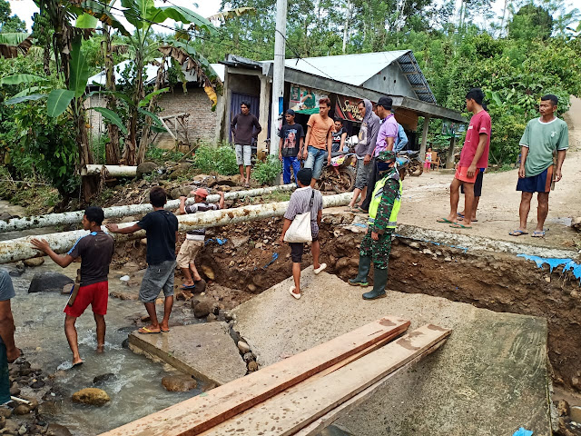 "Untuk sementara jembatan yang menghubungkan pemangku karang tengah dengan pemangku talang gajah belum bisa di lewati kendaraan roda 2 (dua)," Ucap Sertu Fahrul Effendi.